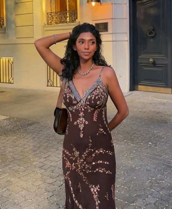 Silk dark brown sequin summer top āļø
