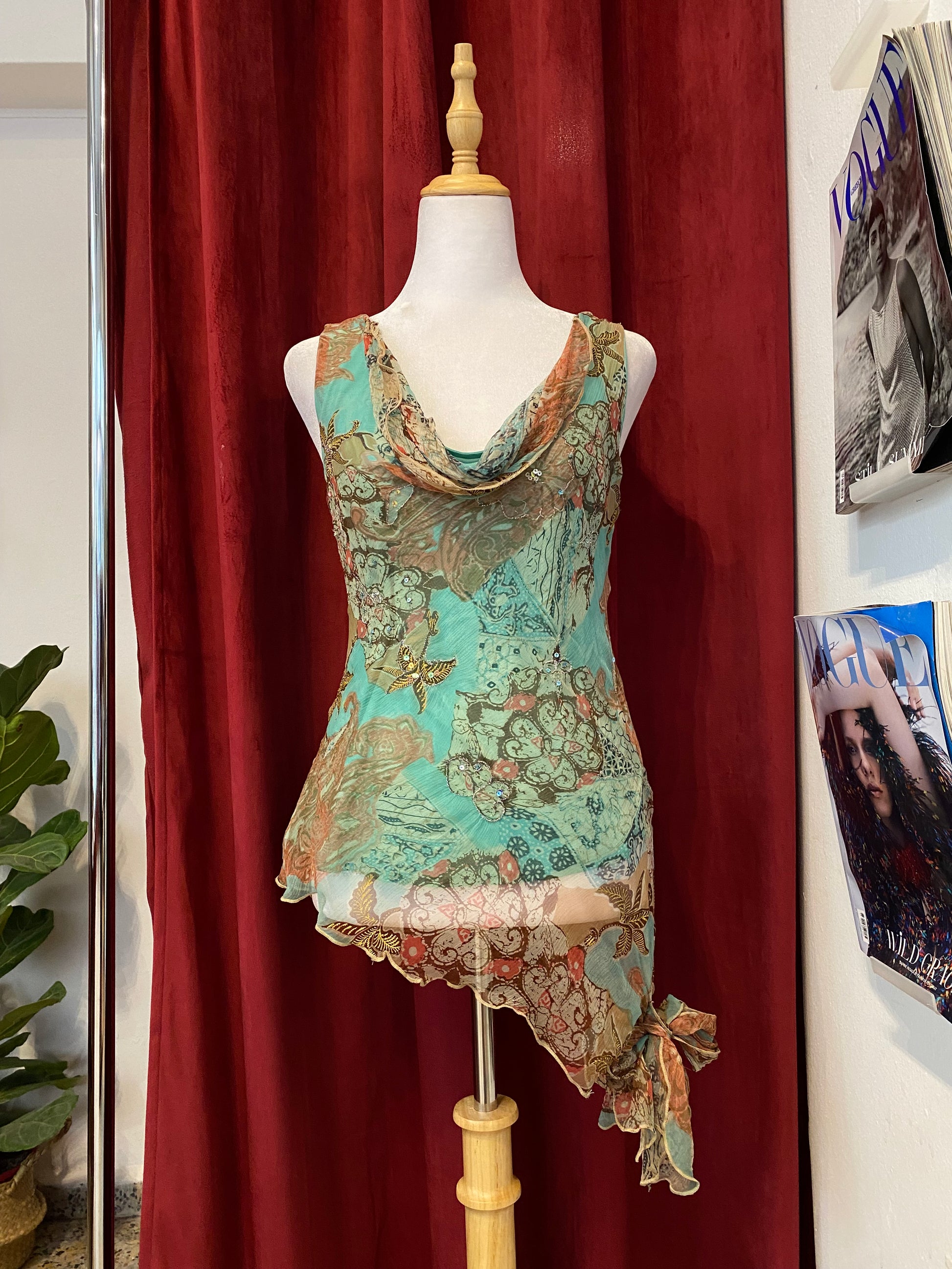 The K Derhy fairy top, made from 100% silk, offers a lightweight and breathable option for warm weather. Its premium fabric enhances comfort, while the elegant design ensures versatility for various occasions. The inherent properties of silk also provide natural moisture-wicking, contributing to a refined wearing experience.