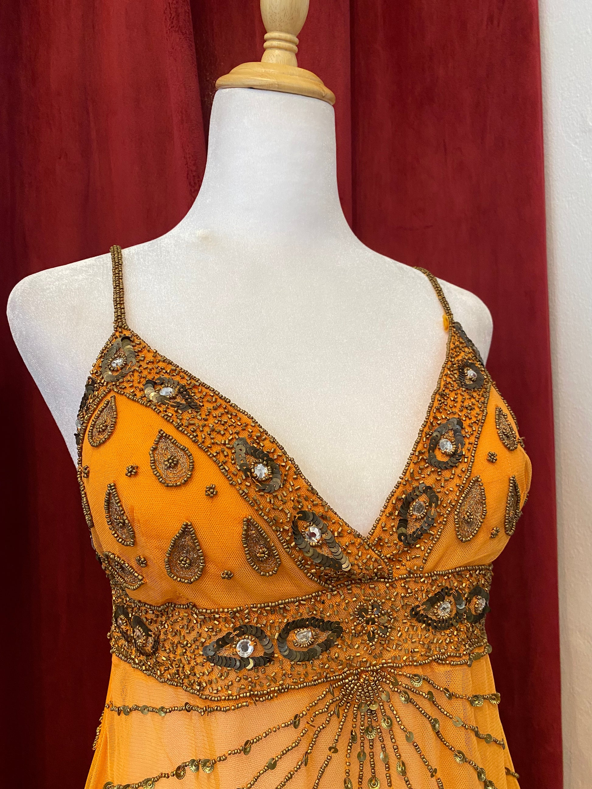 This 100% silk summer top features intricate hand-beading, providing both elegance and comfort. The lightweight fabric enhances breathability, making it suitable for warm weather. Its vibrant orange color adds a striking element to summer wardrobes, while the artisanal craftsmanship ensures quality and durability.