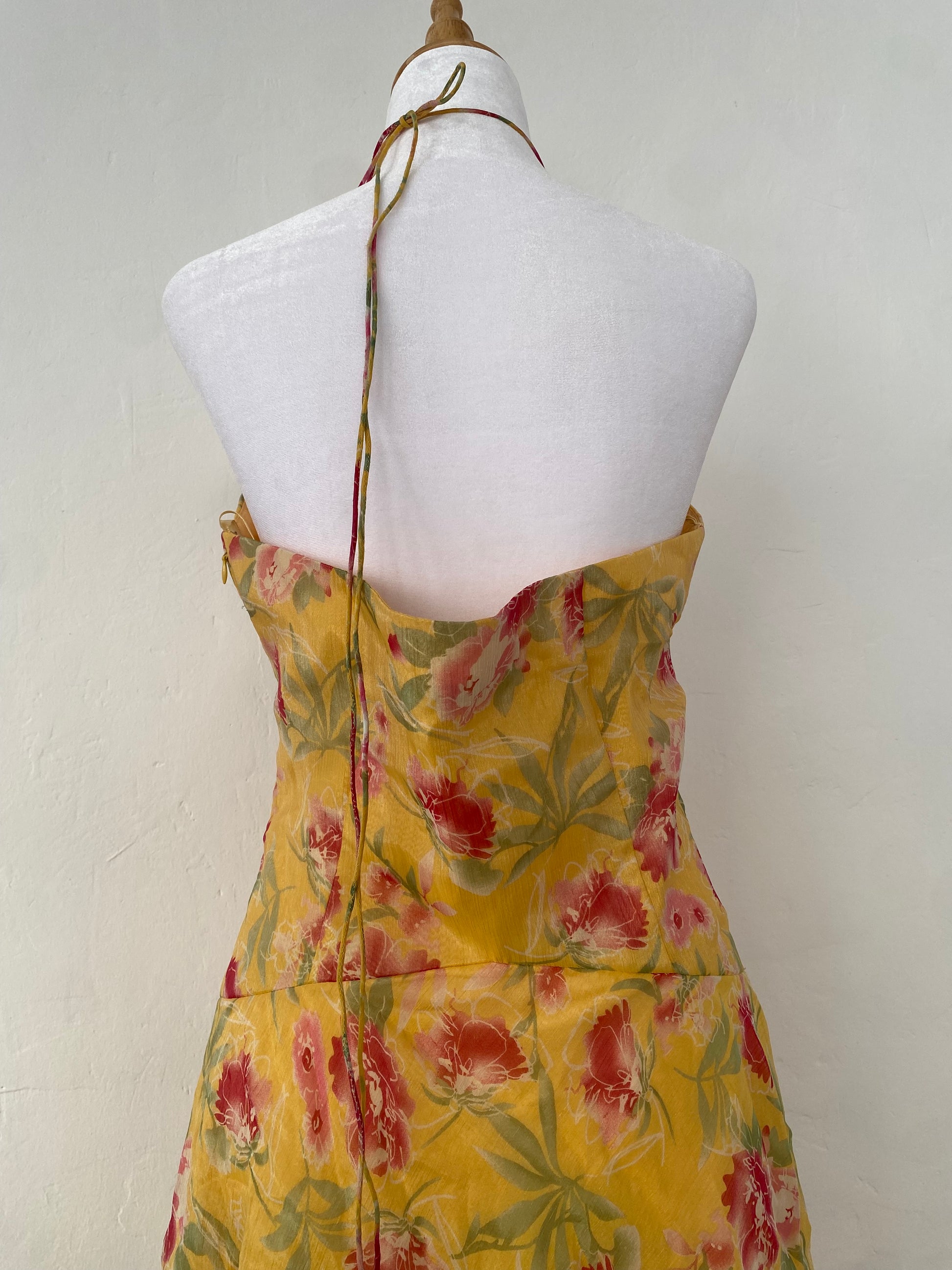 Introducing our 100% silk brand new yellow fairy ruffled dress with handbeaded details. Made with luxurious silk and delicate handbeaded details, this dress will make you feel like a fairy princess. Perfect for any special occasion, the ruffled design adds a touch of whimsy while the handbeaded details add a touch of elegance. Elevate your wardrobe with this one-of-a-kind dress.