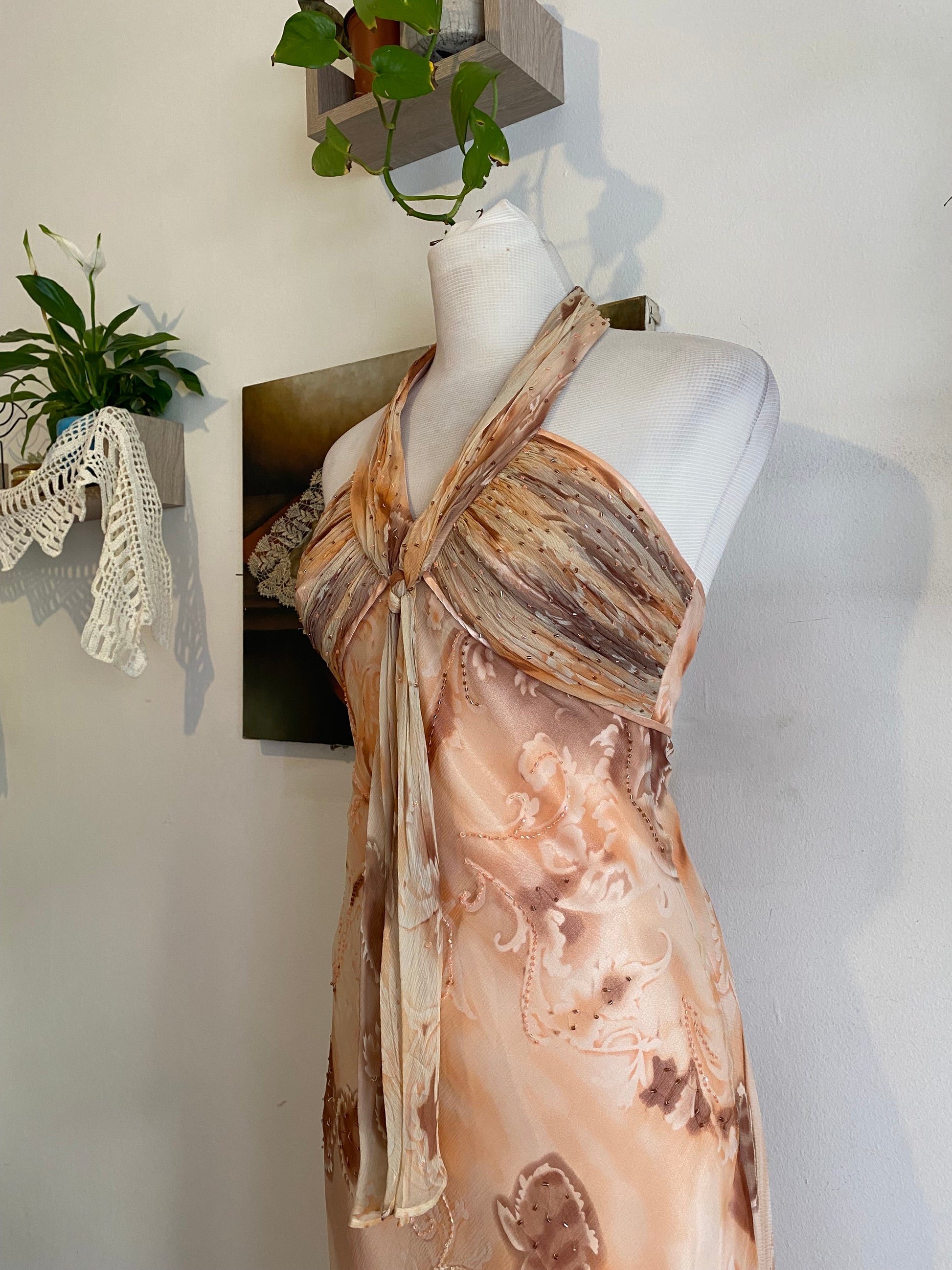 Indulge in pure luxury with our 100% silk dress. The light pink hue adds a delicate touch while the intricate sequin details add a touch of glamour. Elevate your style with this exclusive piece, perfect for any special occasion.