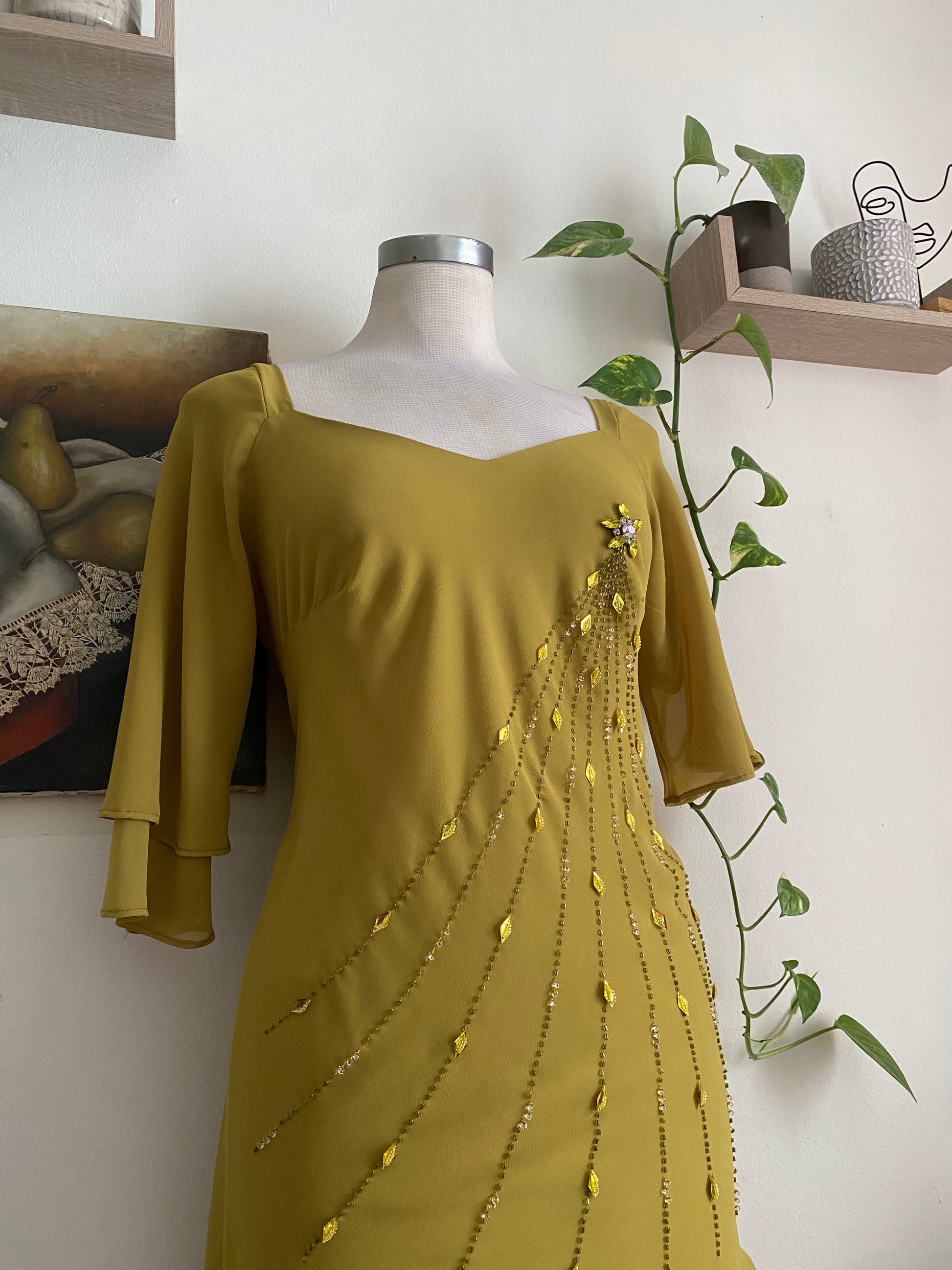 Experience luxury and exclusivity with our brand new 2 piece olive green handbeaded set. Crafted with intricate handbeading, this set exudes elegance and sophistication. Unleash your inner art connoisseur as you adorn yourself with this tasteful and exclusive piece. Elevate your style and make a statement with this one-of-a-kind set.