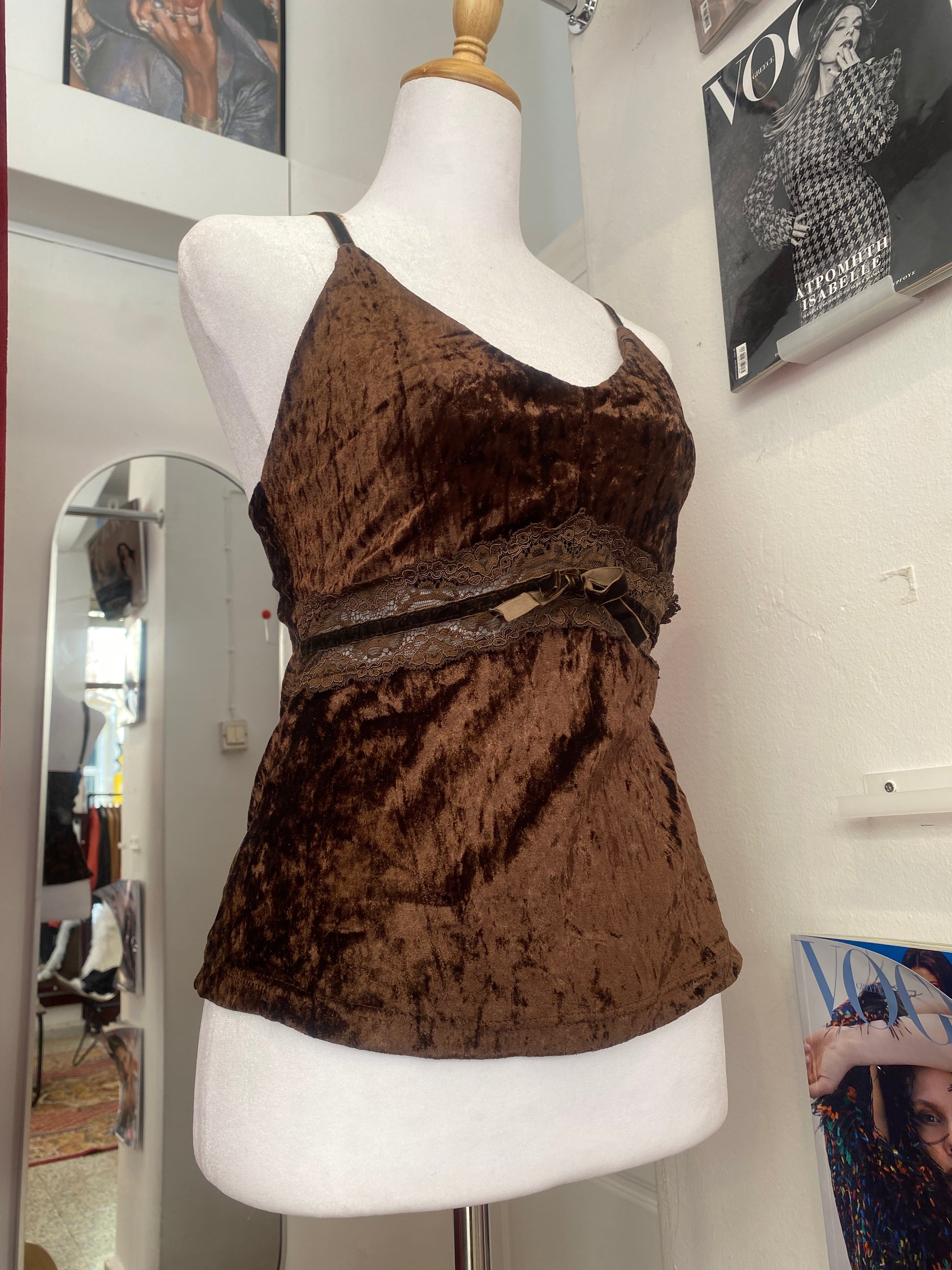 This brand new brown velvet top features a beautiful bow detail, adding a touch of elegance to any outfit. Made with luxurious velvet fabric, it offers comfort and style in one package. Perfect for a sophisticated look that will turn heads.