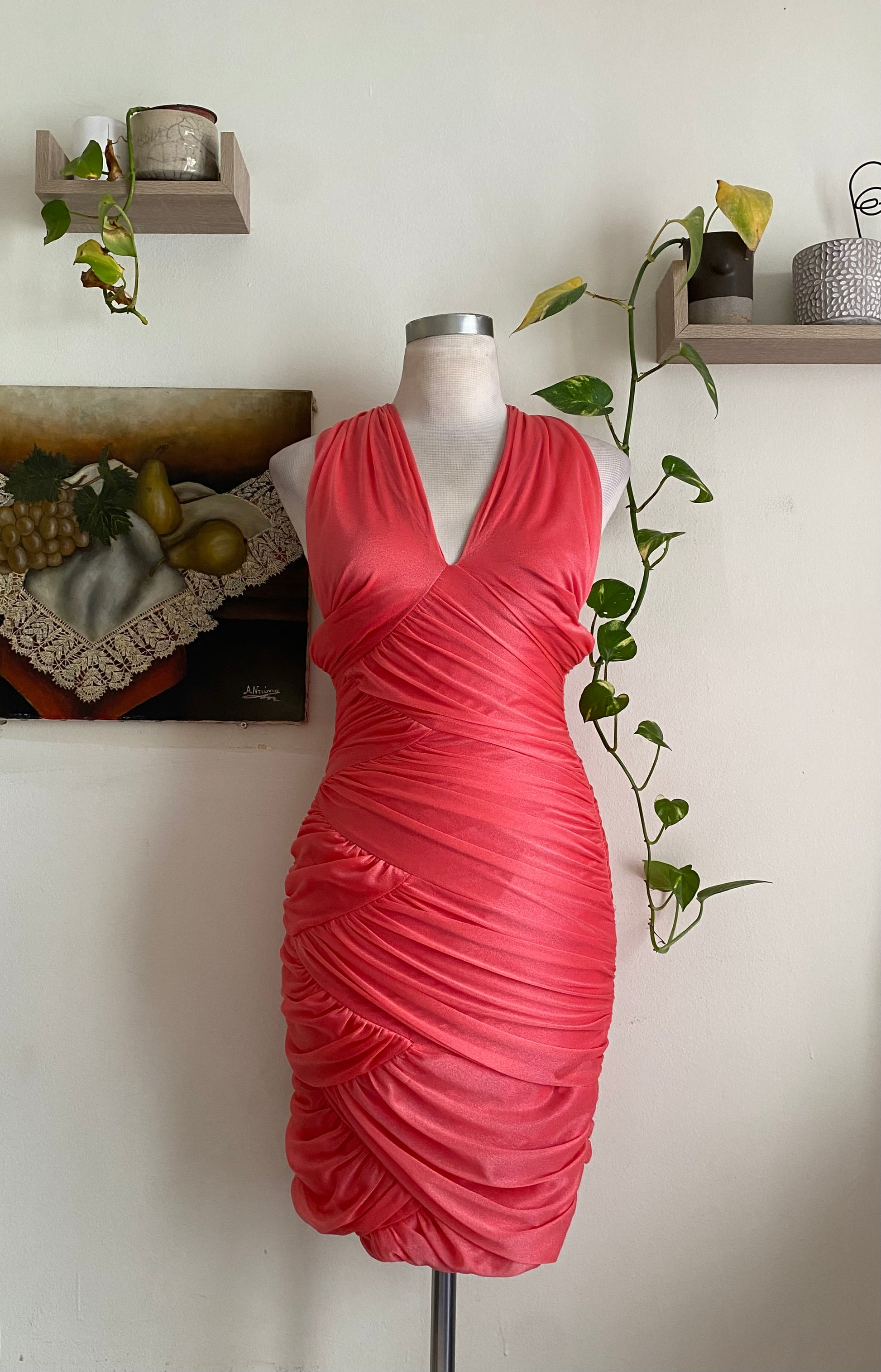 Get ready to turn some heads this summer with our brand new coral bodycon dress! This dress is perfect for any occasion, from a day at the beach to a night out with friends. It's form-fitting design will accentuate your curves and make you stand out in the best way possible. Get it now and be the talk of the town!