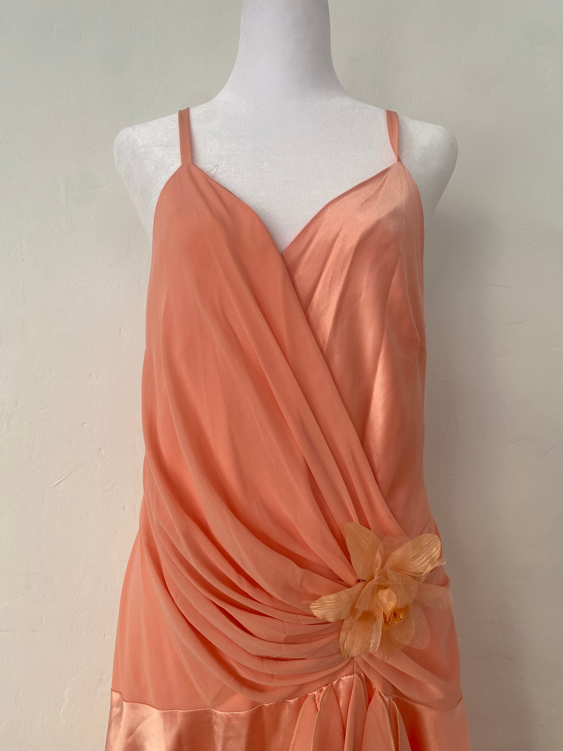 Take a daring step with our brand new light orange satin ruffled dress. This dress will make you stand out with its bold color and stunning ruffled design. Perfect for a night out or special occasion, this dress will add a touch of adventure and confidence to your wardrobe. Order now and make a statement!Measurements:
