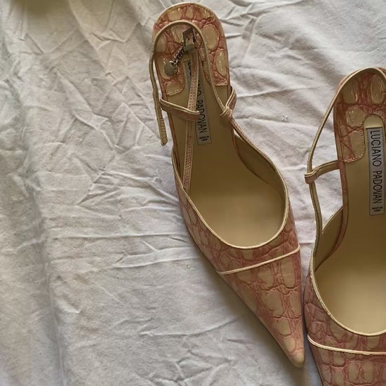 Elevate your wardrobe with our stunning Brand New Luciano Padovan Real Leather Croco Pink Heels. Made with luxurious real leather and adorned with a subtle crocodile texture, these heels exude elegance and sophistication. Step out in style and turn heads with these premium heels.