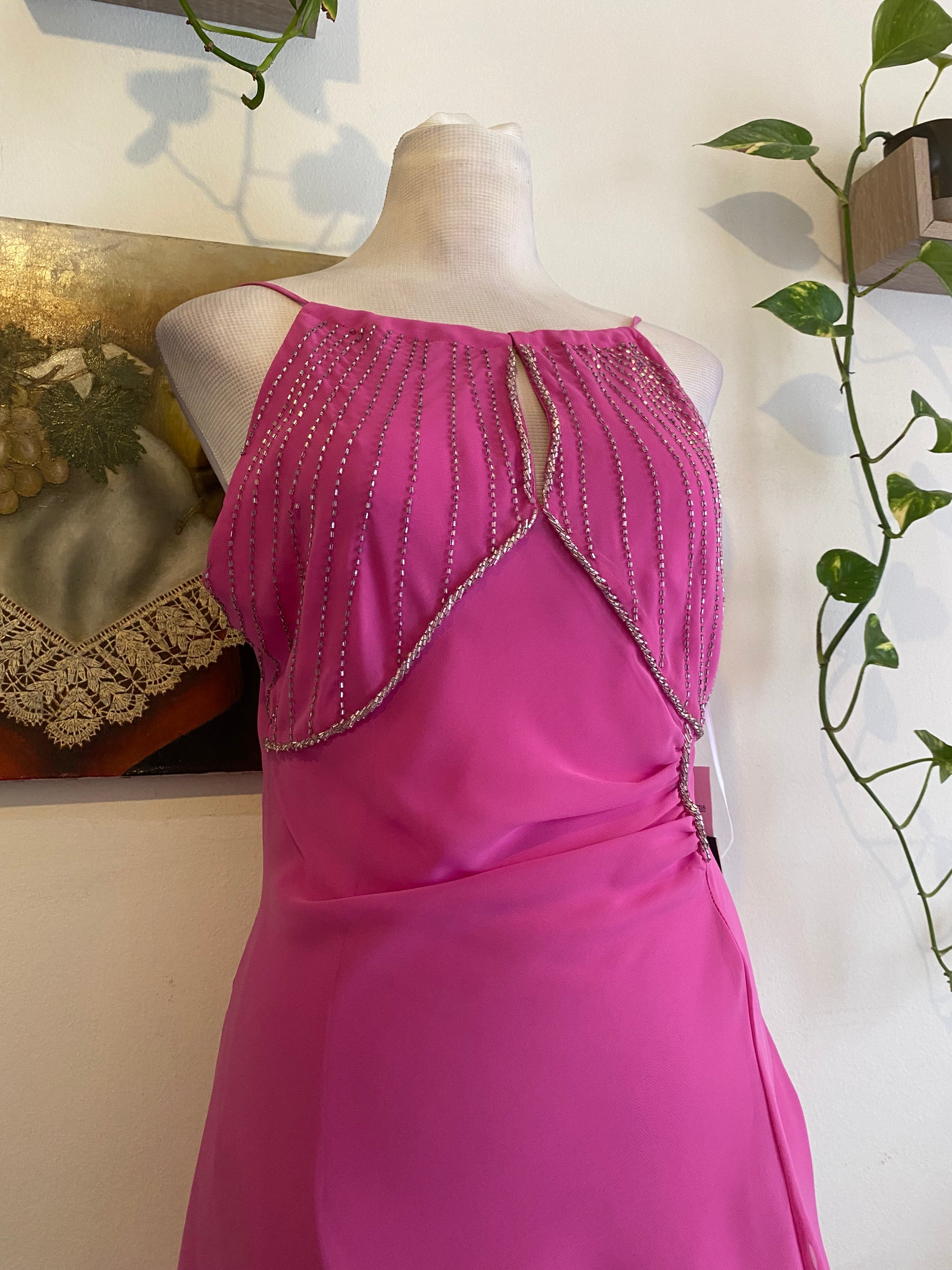 "Add a pop of color to your wardrobe with our brand new pink handbeaded top! Stand out from the crowd with this unique and playful addition to any outfit. Handcrafted with care, this top is sure to make a statement wherever you go. (Perfect for the fashion-forward and fun-loving individual!)"