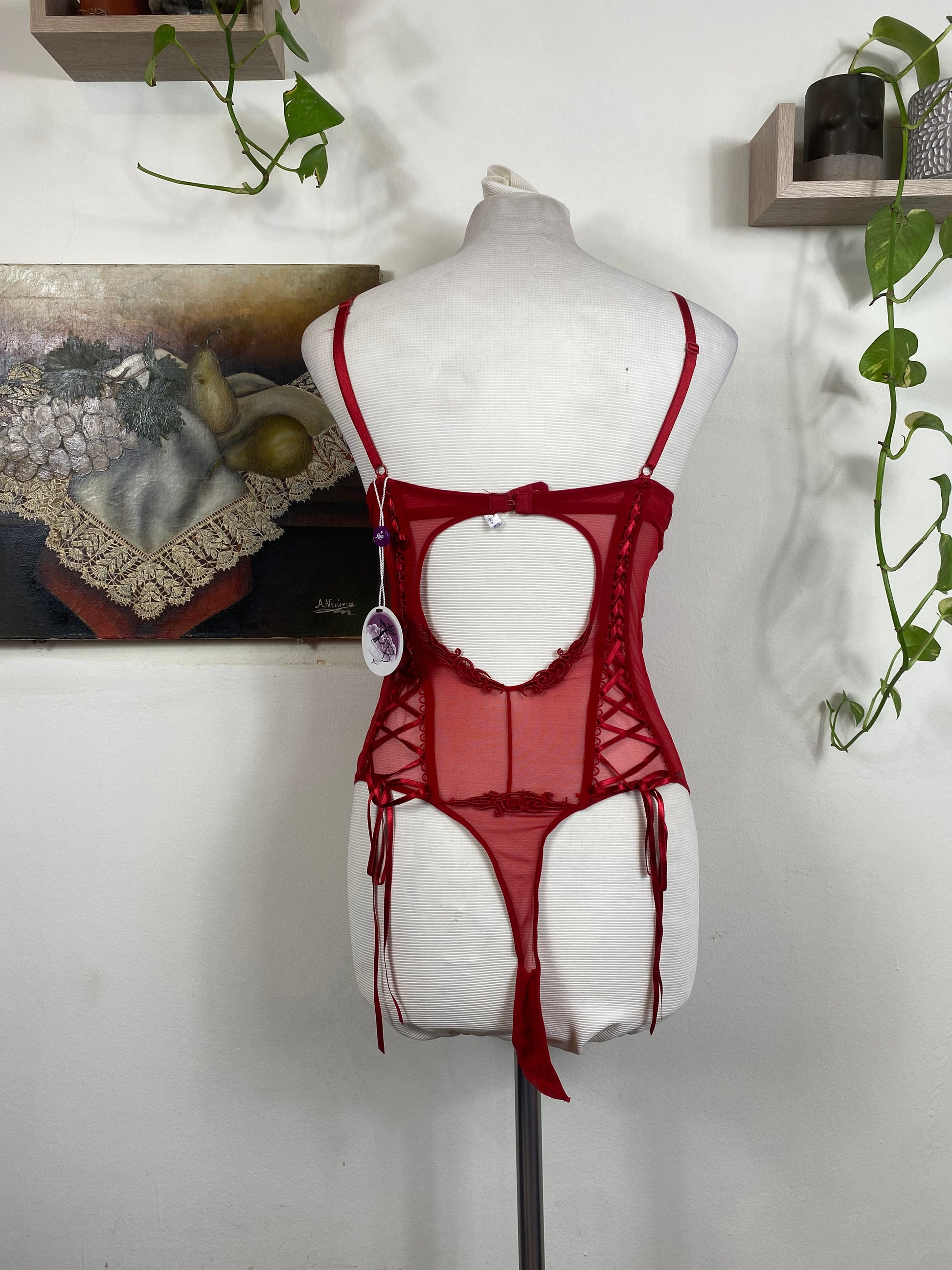 This brand new red lace bodysuit is the perfect addition to your wardrobe. Made with high-quality lace, it provides a comfortable and flattering fit. With its vibrant red color, it is sure to make a bold statement. Elevate any outfit with this stunning and versatile piece. Original price 80€