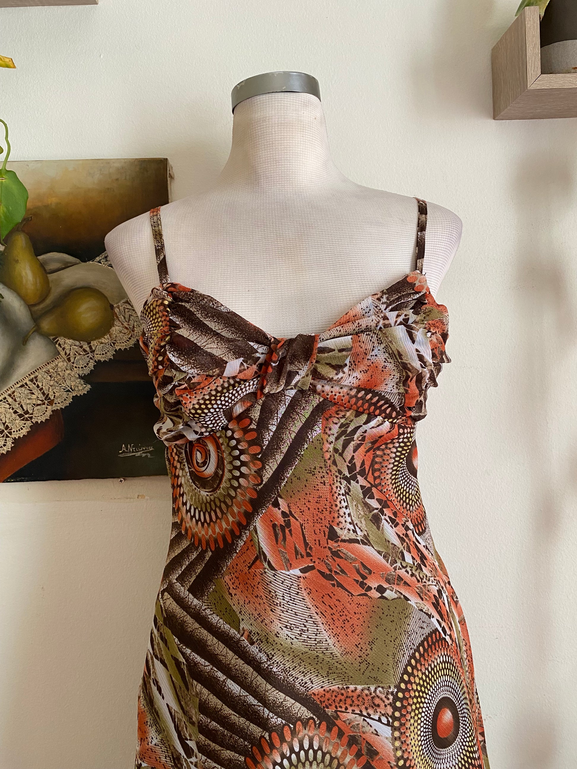 Introducing our newest addition: the brand new ruffled multicoloured dress. With its vibrant colors and intricate ruffles, this dress exudes elegance and exclusivity. Step out in style and make a statement with this luxurious piece, perfect for any occasion. Elevate your wardrobe with this fashion-forward dress.