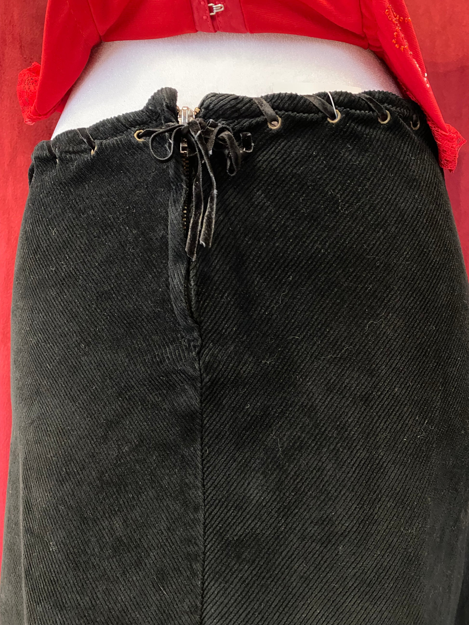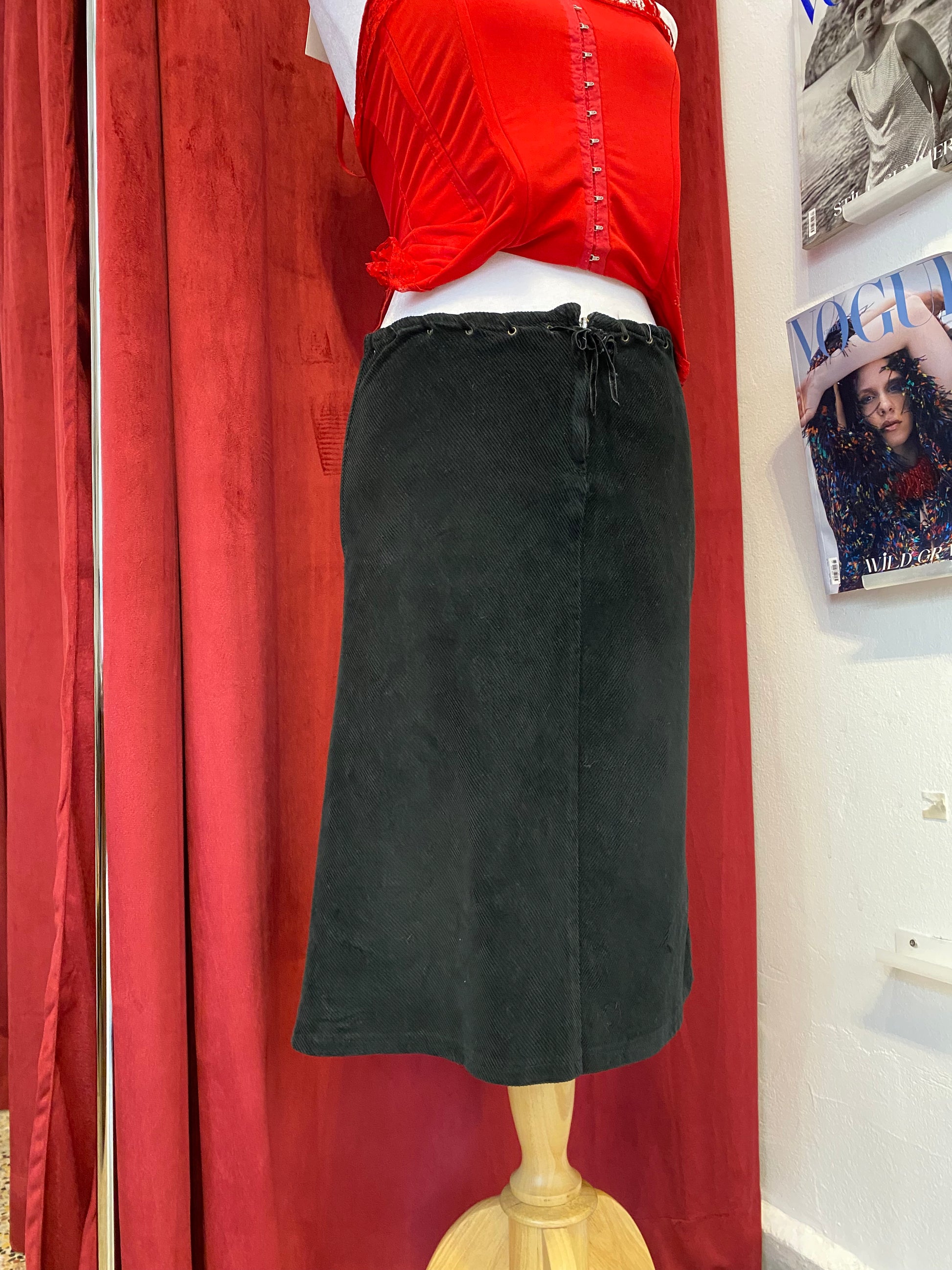The corduroy midi skirt features leather belt detailing, combining durability and style. Crafted from high-quality corduroy, this garment offers a comfortable fit while providing warmth. The leather accents enhance its aesthetic appeal, making it suitable for various occasions. The midi length ensures versatile wearability across seasons.