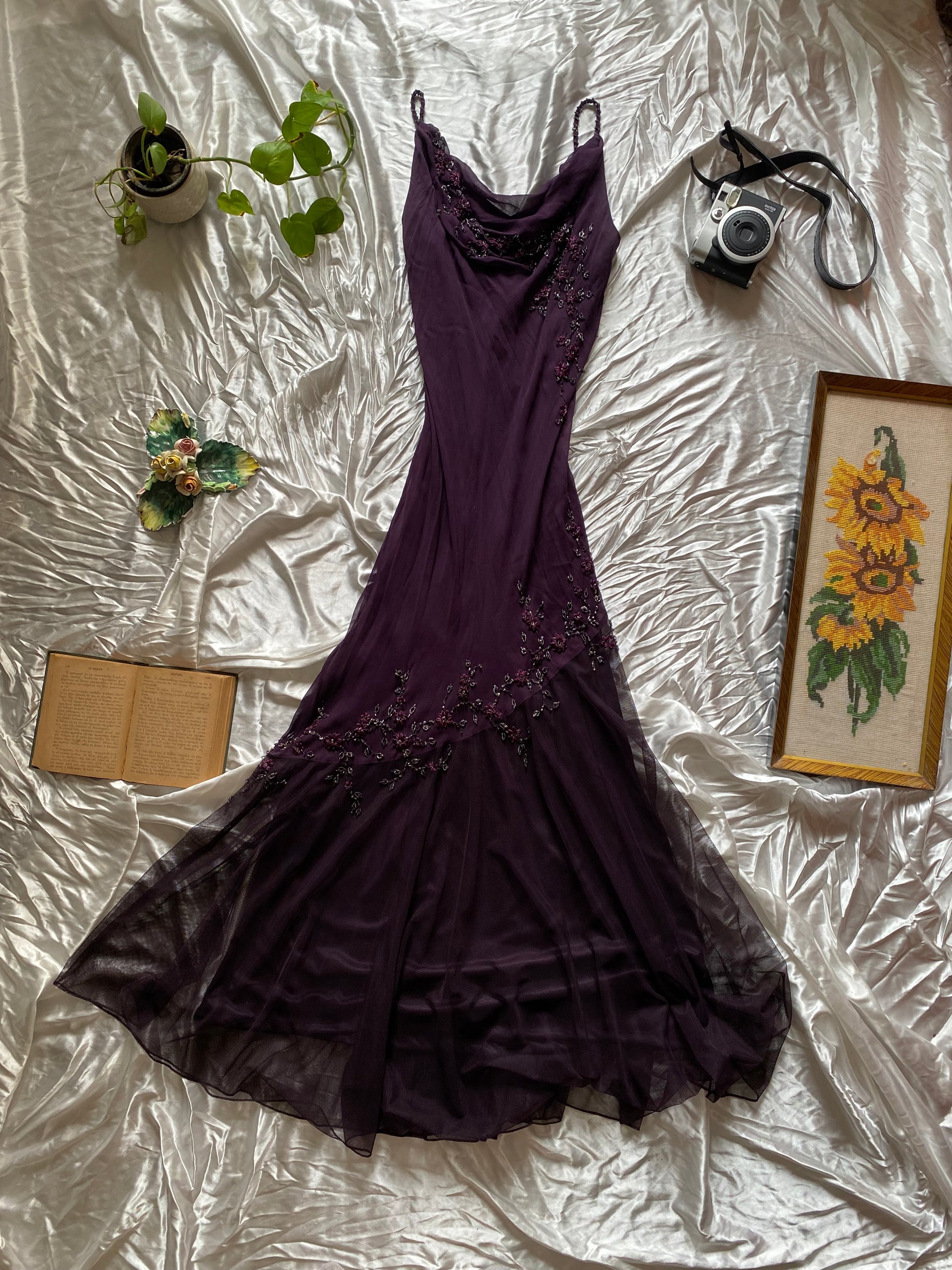 Dark purple embroidered dress