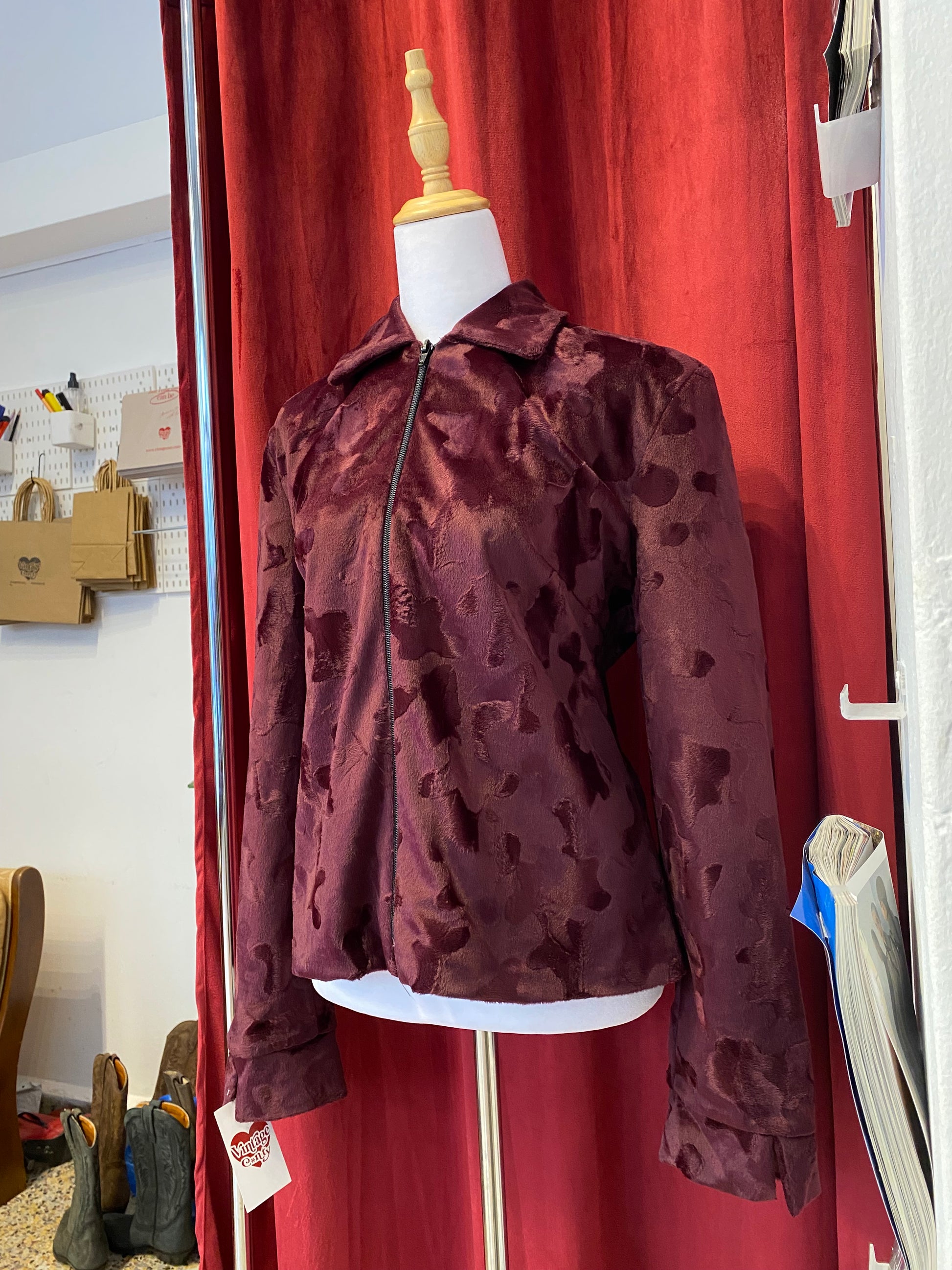 Elevate your style with our Deep Burgundy Faux Fur Jacket. Featuring a luxurious faux fur material in a rich burgundy color, this jacket is accented with unique cow print details. Stay cozy and fashionable in this must-have piece.
