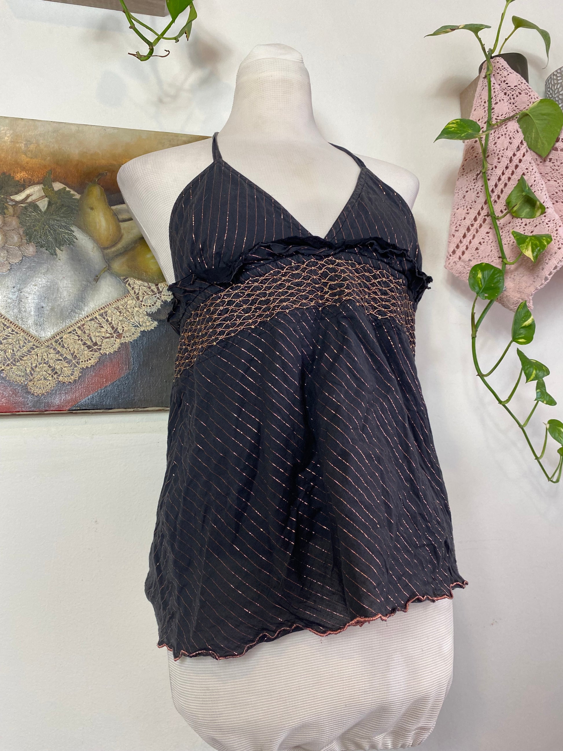 "Stay cool and stylish in our Halter Brown Summer Top! With an open back design, you'll have the perfect combo of comfort and fashion. Perfect for summer days and nights, this top will keep you looking and feeling your best. Don't miss out, get yours now!"