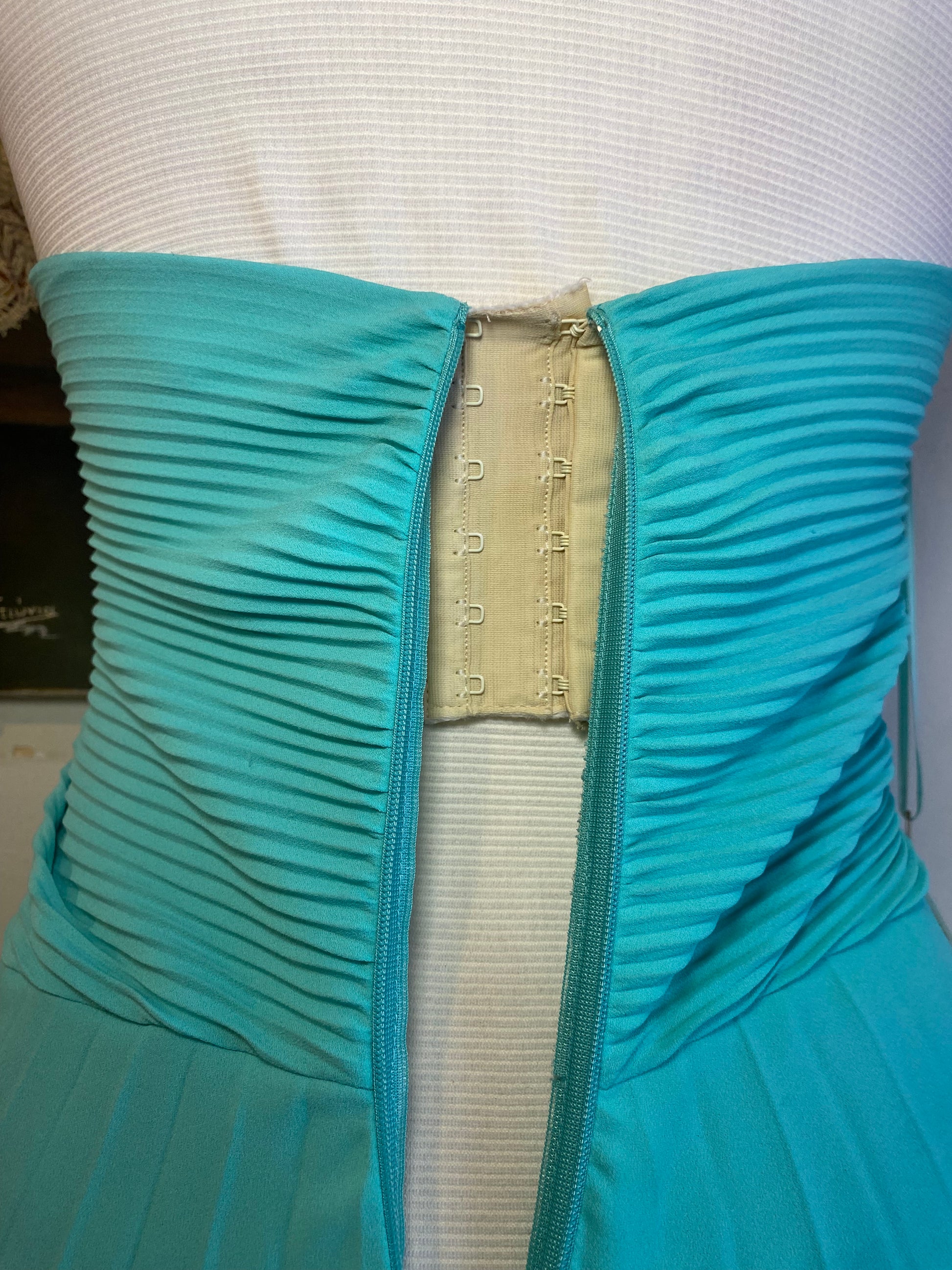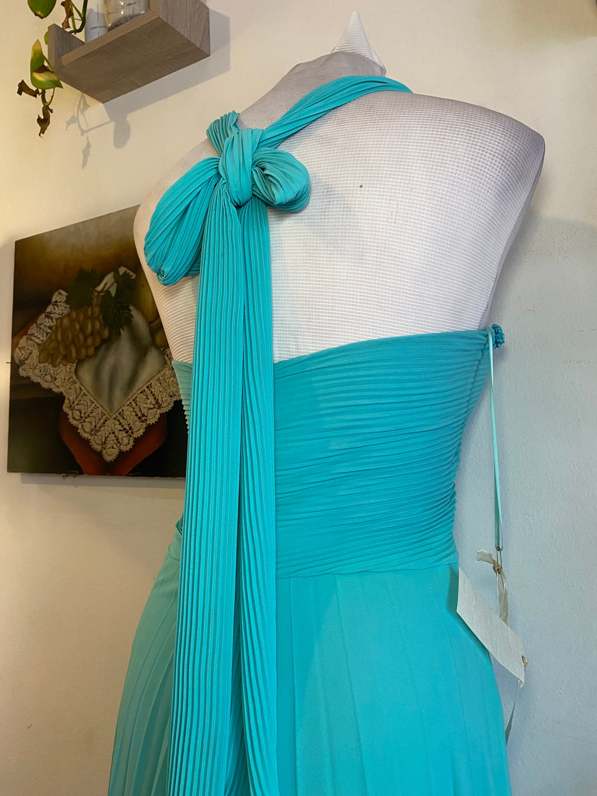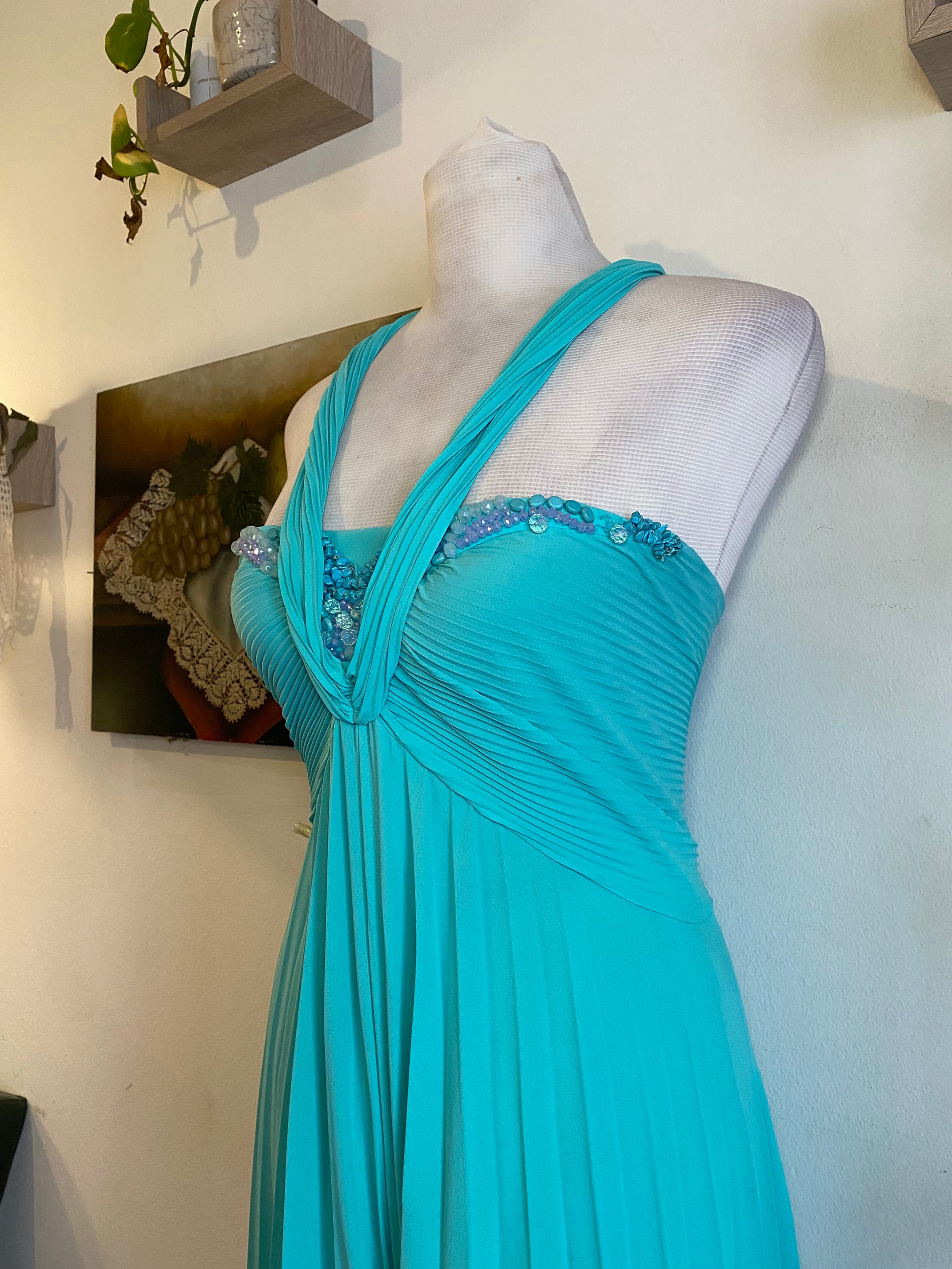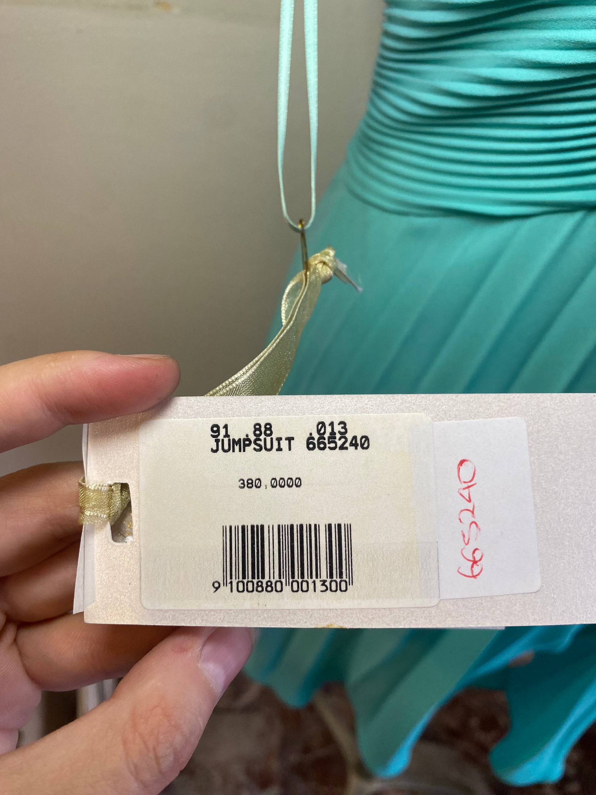 Indulge in luxury with our handcrafted Haute Couture Jumpsuit. Featuring a stunning corseted top in a striking turquoise color, this jumpsuit exudes sophistication. Each intricate detail is meticulously hand-beaded, making it a one-of-a-kind piece. Elevate your wardrobe and make a statement with this exclusive and brand new jumpsuit.