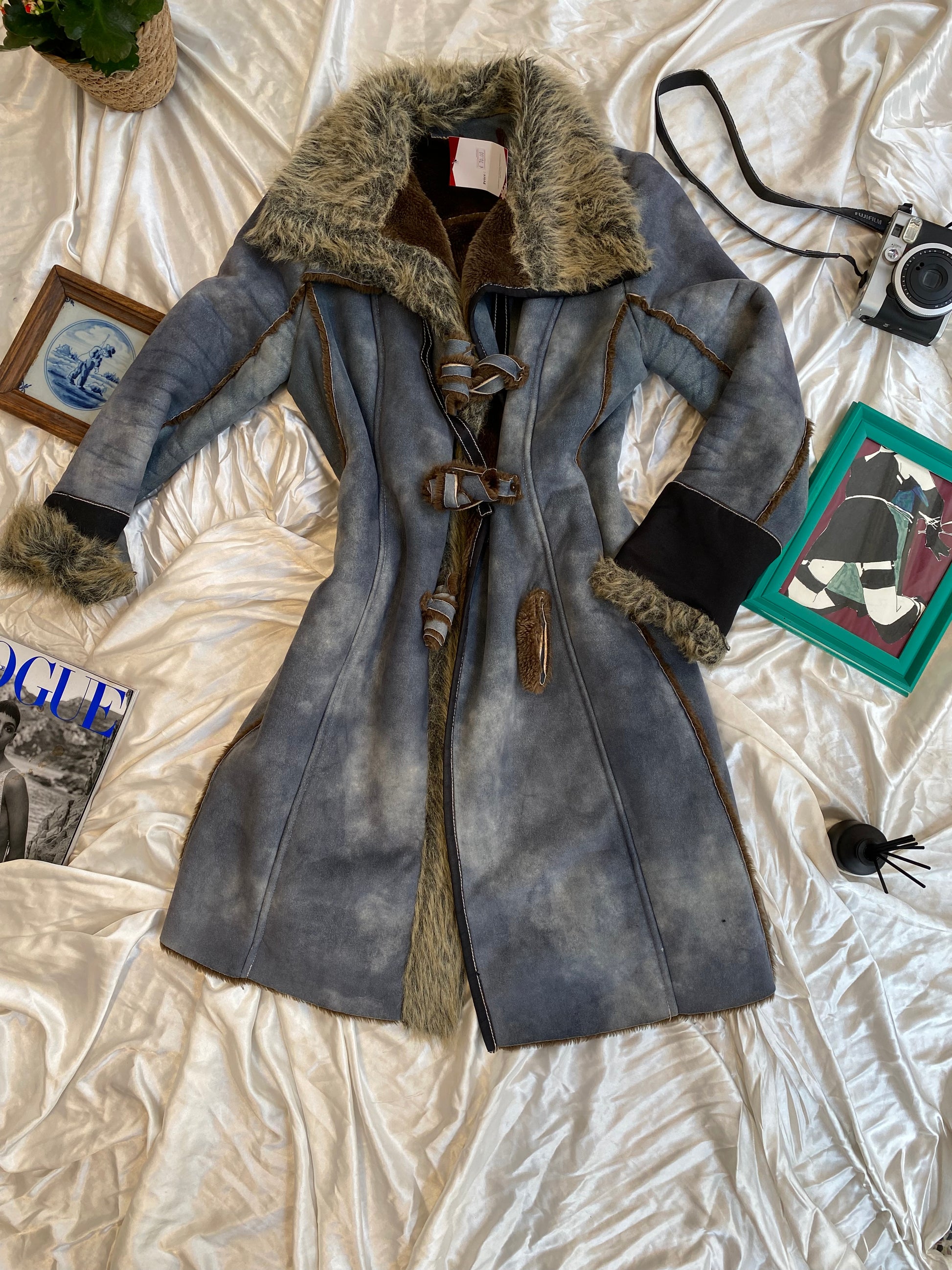 Expertly crafted and stylishly designed, our long blue Afghan coat is a must-have for any fashion-forward individual. Made with vegan fur, guarantees warmth and comfort. Elevate your winter wardrobe with this luxurious piece.