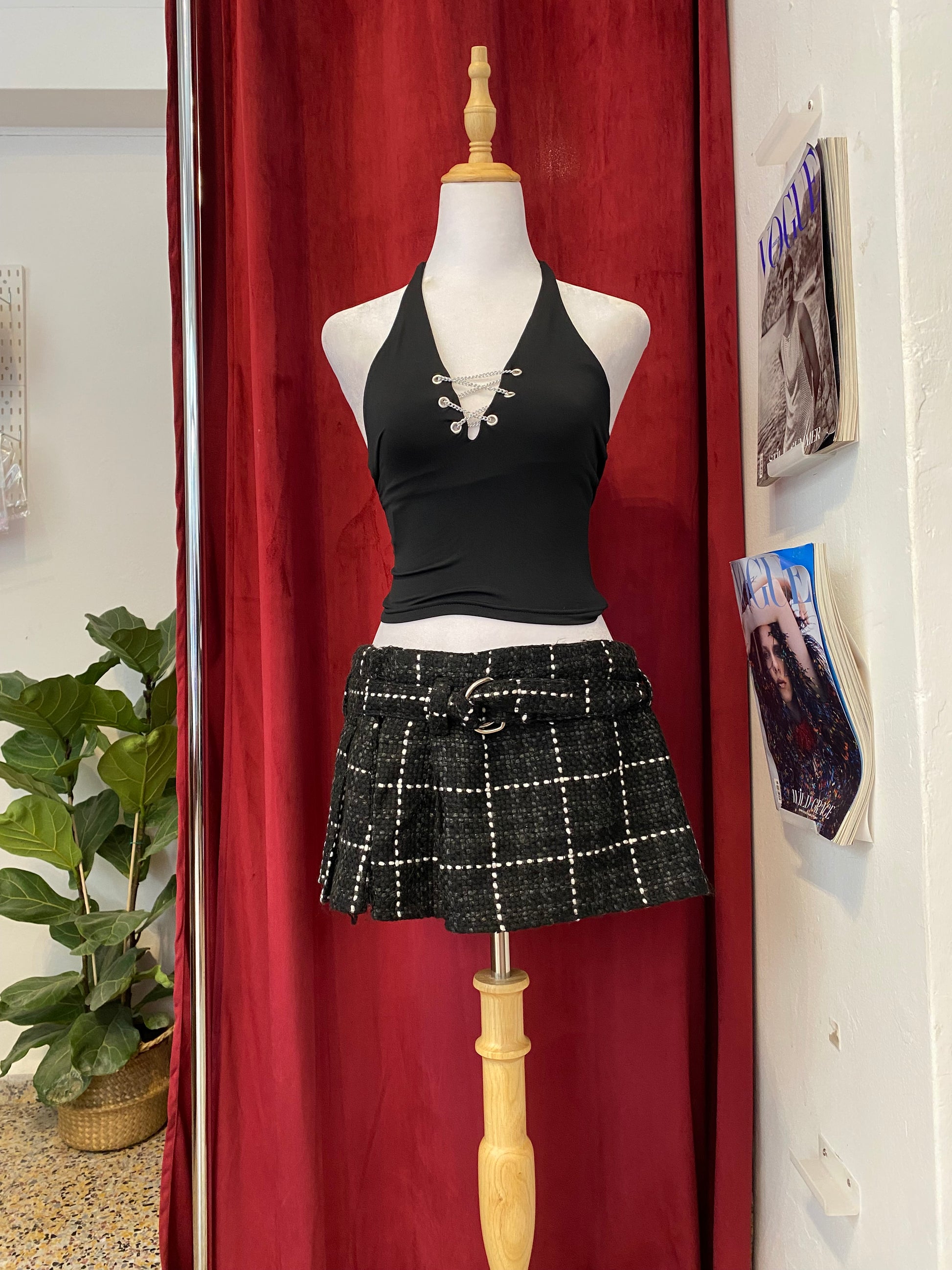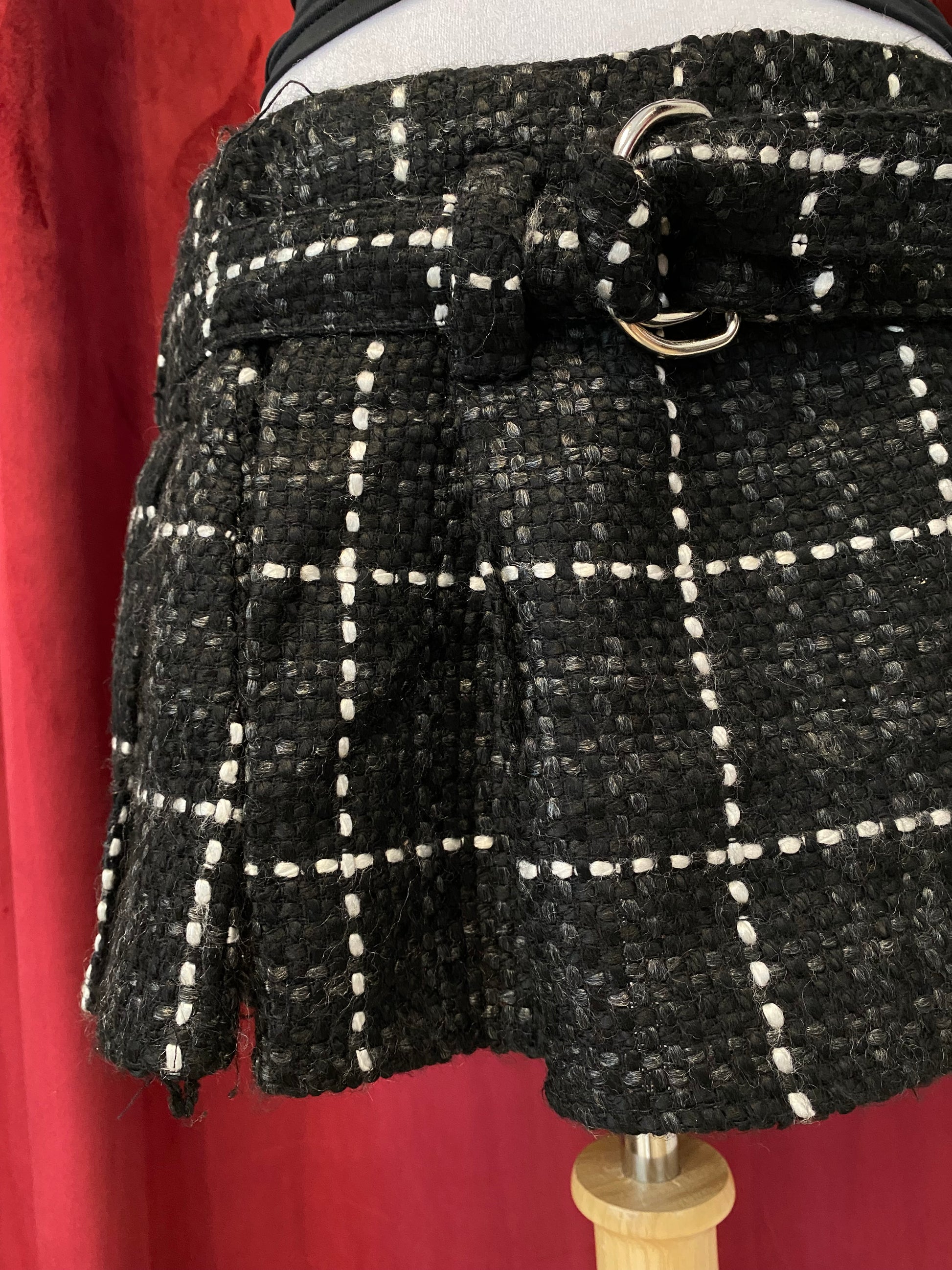 Micro mini pleated tweed skirt with belt detail