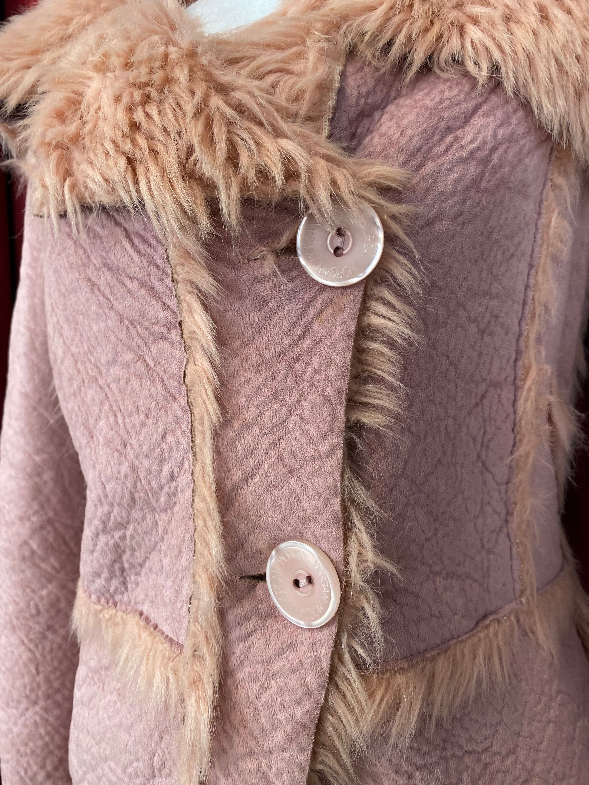 Introducing the luxurious Morgan de toi short pink Afghan coat. Made with high-quality materials, this coat offers both style and comfort. Its unique design and vibrant color make it a must-have fashion piece. Elevate your wardrobe with this elegant and chic coat.