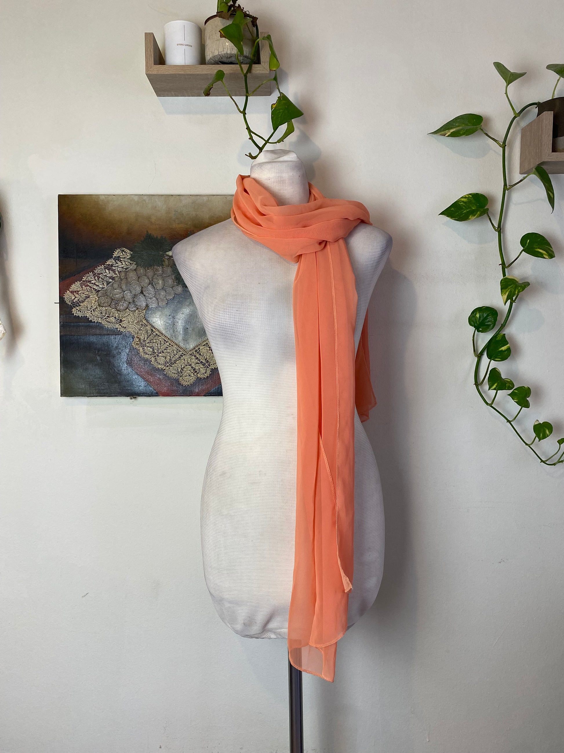 This luxurious orange silk scarf adds a touch of elegance to any outfit. Made from 100% pure silk, it is soft, lightweight and perfect for all seasons. With its vibrant color and smooth texture, it is the perfect accessory for any occasion. Elevate your style with this beautiful and versatile scarf.