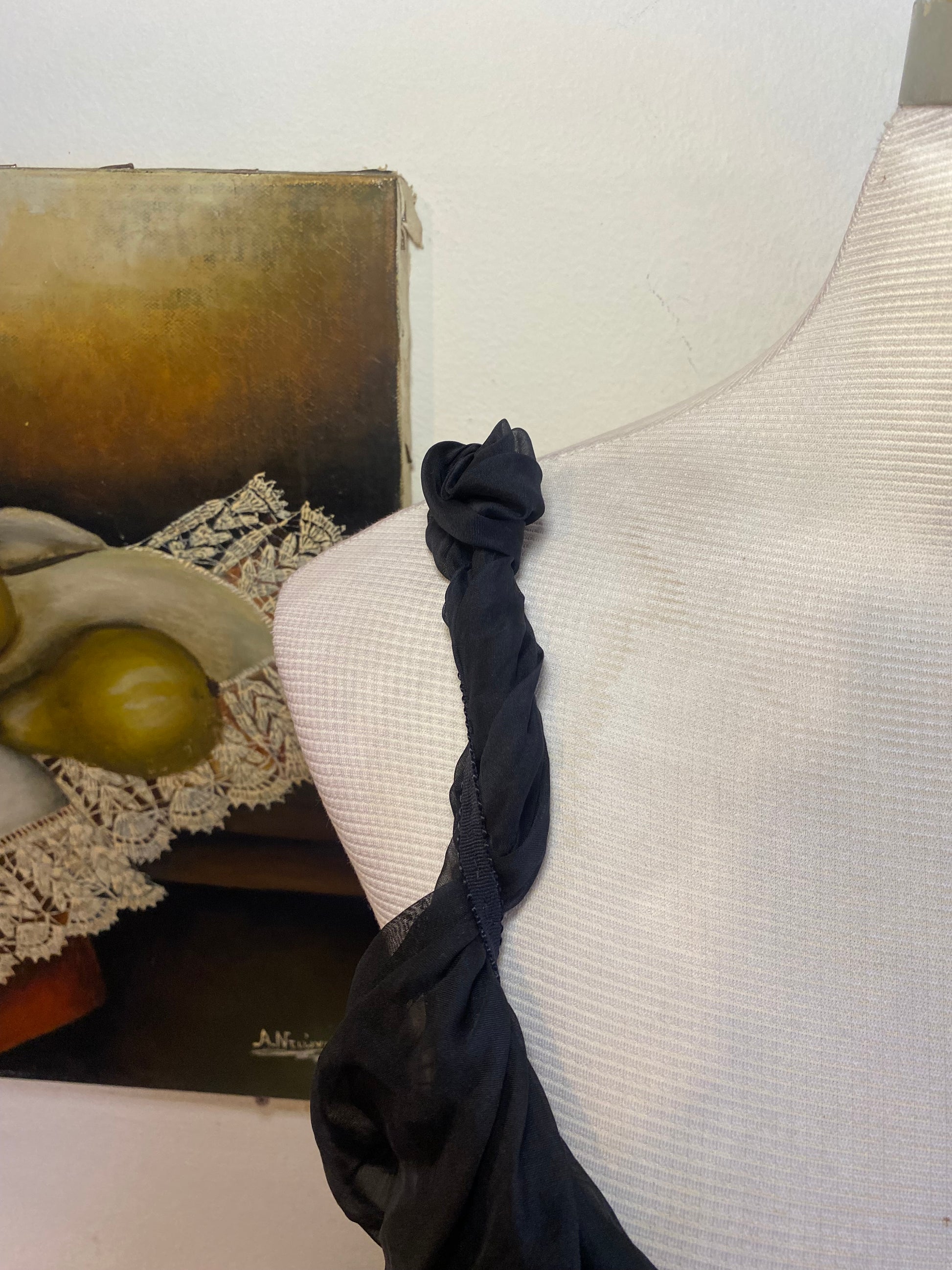 Designed for the contemporary fashionista, this Silk brand new haute couture black mini dress is the ultimate statement piece. Crafted from luxurious silk fabric, this dress exudes elegance and sophistication. With its timeless design and impeccable tailoring, it is perfect for any special occasion. Elevate your style with this must-have dress.