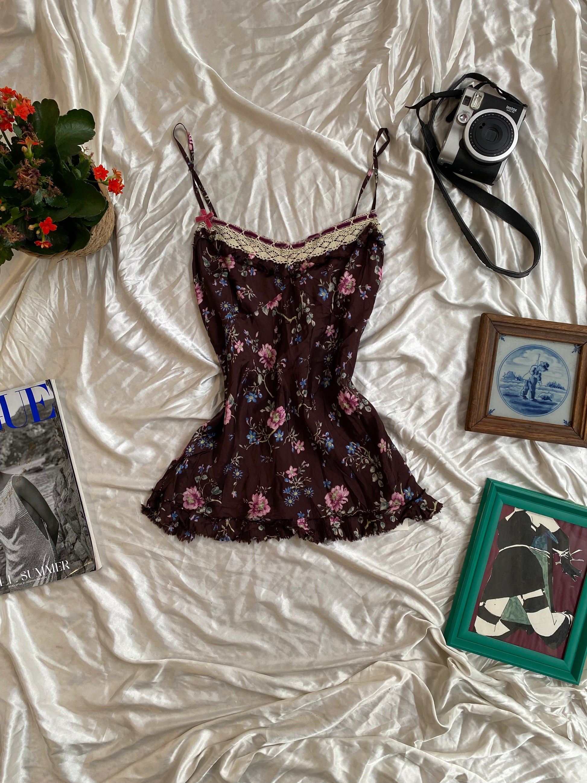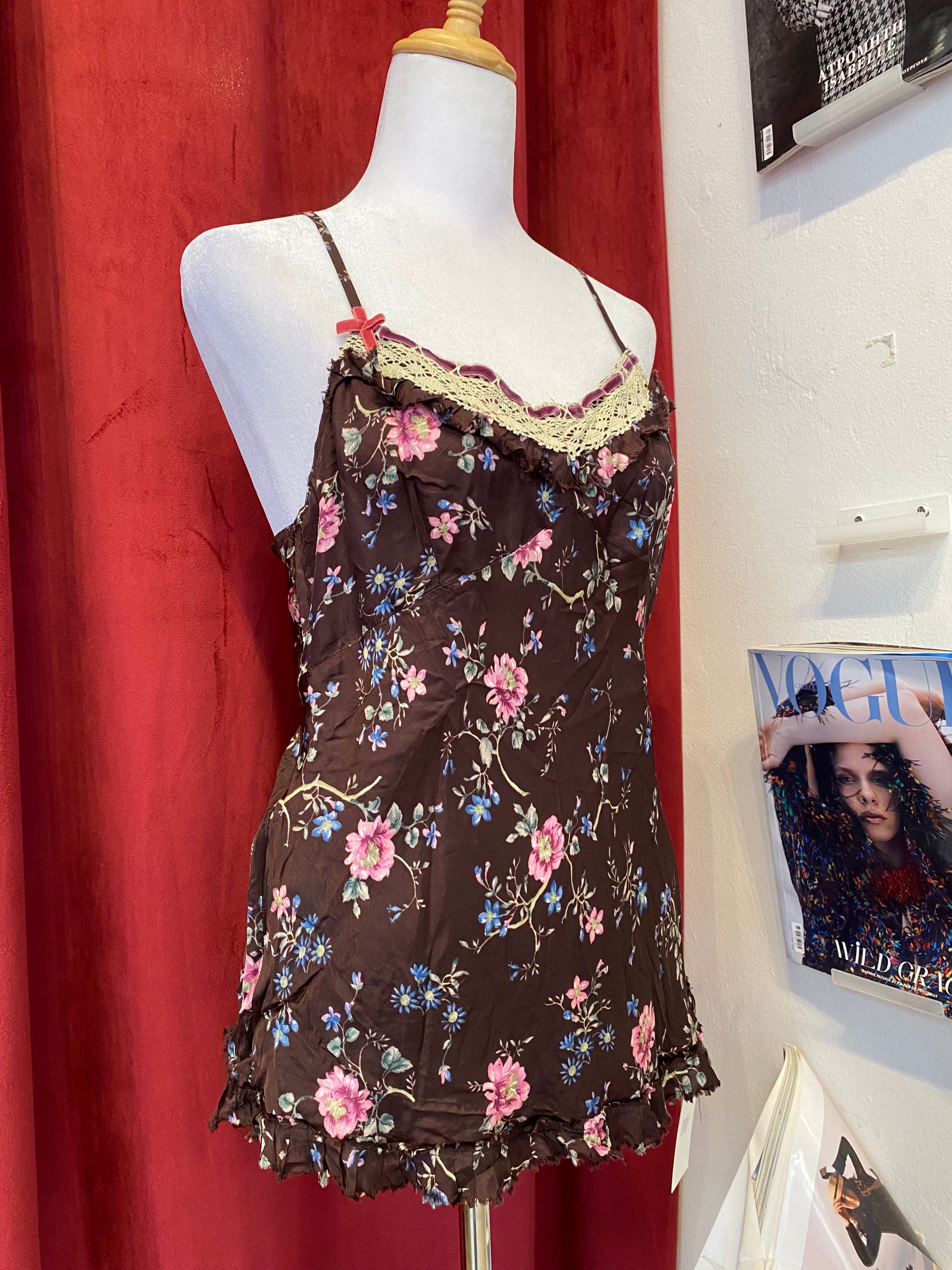 Vintage Benetton floral brown blouse with lace details