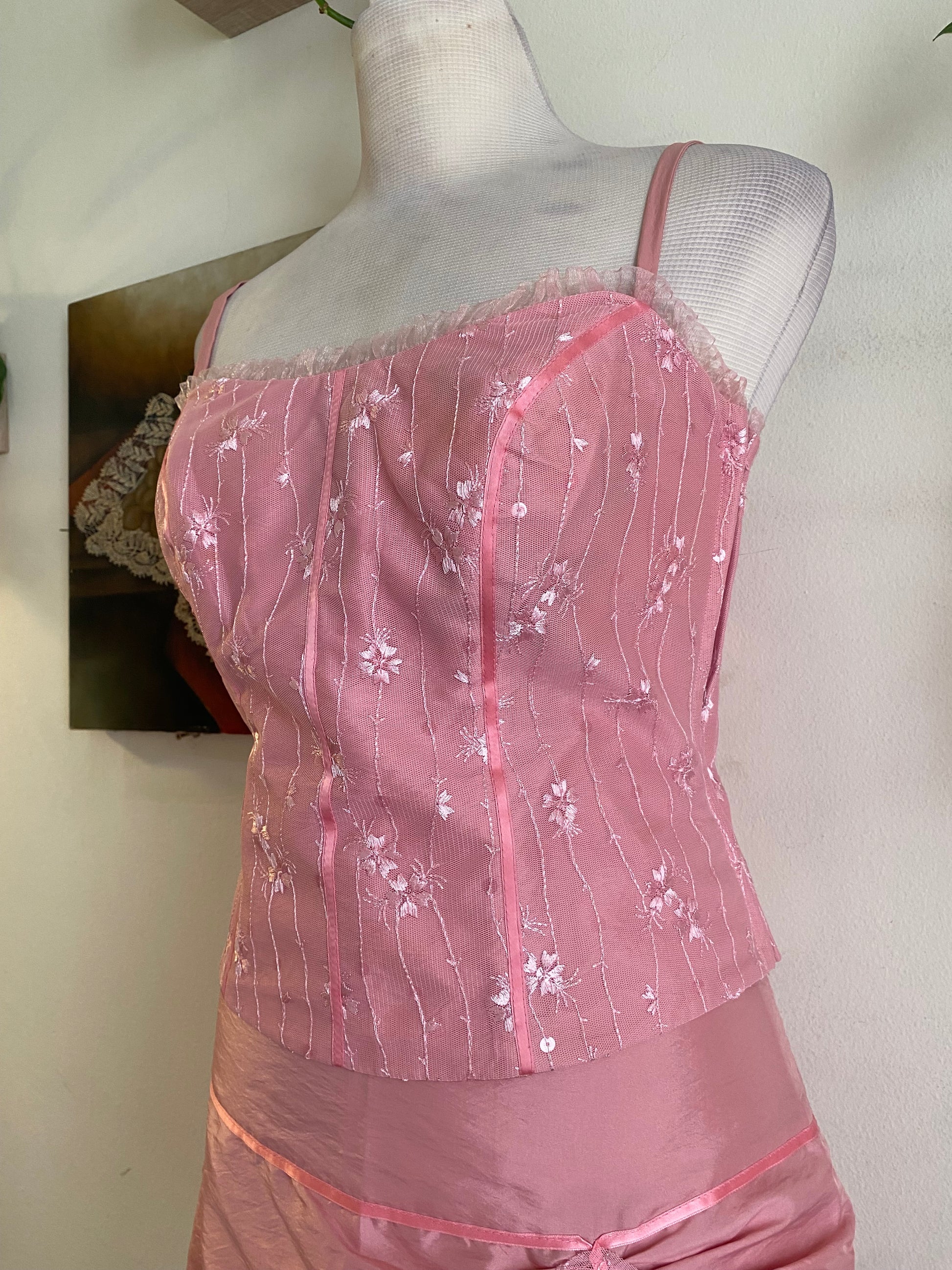 Introducing the Y2K light pink organza set, a must-have for any fashion-forward individual. Made from delicate and ethereal organza fabric, this set exudes a trendy Y2K aesthetic. Its light pink hue adds a touch of femininity, making it a versatile and stylish addition to any wardrobe. Elevate your style game with this unique and fashionable set.